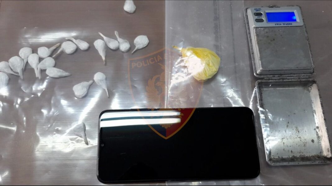 Gjatë kontrollit fizik dhe kontrollit të banesës të shtetasit A. B., shërbimet e Policisë gjetën dhe sekuestruan në cilësinë e provës materiale, sasi lënde të dyshuar narkotike të llojit kokainë, një pjesë e ndarë në doza gati për shitje, një peshore elektronike dhe një aparat celular”, njofton policia.