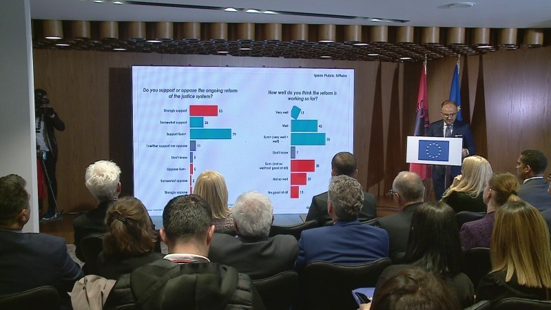“Kjo pjesë e sondazhit në këndvështrimin tim ka shumë rëndësi. Ne dëgjojmë shumë të flitet për reformën në drejtësi. Mbështetja e shqiptarëve për reformën në drejtësi është shumë e lartë dhe shkon në 79% dhe 55% mendojnë se kjo reformë po shkon mirë. Nga ana tjetër 13% mendojnë se nuk po shkon mirë. Gjetjet konfirmojnë besimin e shqiptarëve dhënë autoriteteve të tyre por gjithashtu komunitetit ndërkombëtar për ta ndryshuar sistemin e drejtësisë”, tha ambasadori Luigi Soreca.