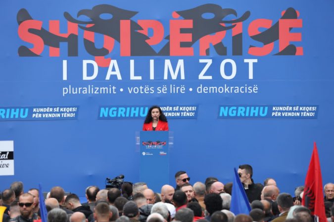Sot jemi me mijëra në këmbë të palodhur pa frikë përballë këtij regjimi. Shqipëria nuk shitet, nuk blihet dhe as nuk merret peng”, tha ndër të tjera Jola Hysaj.