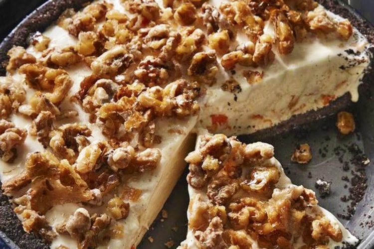 Në tasin ku keni akulloren, AgroWeb.org ju udhëzon që të shtoni gjalpin i cili duhet të jetë i shkrirë në temperaturë ambjenti arrat e thërrmuara dhe përzjeini bashkë.