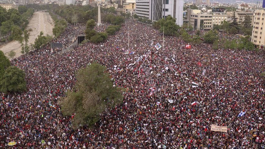 Sipas mediave lokale, më shumë se 800.000 protestues u mblodhën në Sheshin Italia në Santiago në ditën e shtatë të protestave për të shprehur zemërimin ndaj qeverisë së presidentit Sebastian Pinera dhe politikave të saj.
