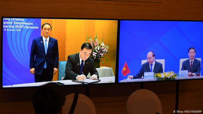“Partneriteti ekonomik rajonal, gjithëpërfshirës” ose RCEP, siç quhet, përfshin 2.2 miliardë njerëz dhe pothuajse një të tretën e prodhimit ekonomik global. Marrëveshja ul tarifat, përcakton rregullat e përbashkëta tregtare dhe kështu lehtëson edhe rrugët e furnizimit. Marrëveshja përfshin tregtinë, shërbimet, investimet, tregtinë elektronike, telekomunikacionin dhe të drejtat e autorit.