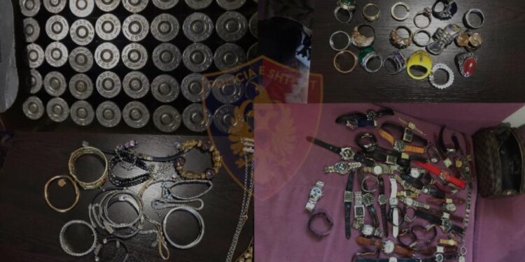 I arrestuari është B.N, ku gjatë kontrollit të banesës, në kuadër të procedimit penal, iu gjetën dhe sekuestruan në cilësinë e provës materiale: 2 krehra pistolete me fishekë, municion luftarak, 55 ora të markave të ndryshme, 18 unaza, 20 byzylykë dore, varëse, për të cilat nuk dispononte asnjë dokumentacion apo faturë blerjeje, të dyshuara si produkte të veprimtarisë kriminale jashtë vendit në fushën e vjedhjes së banesave.