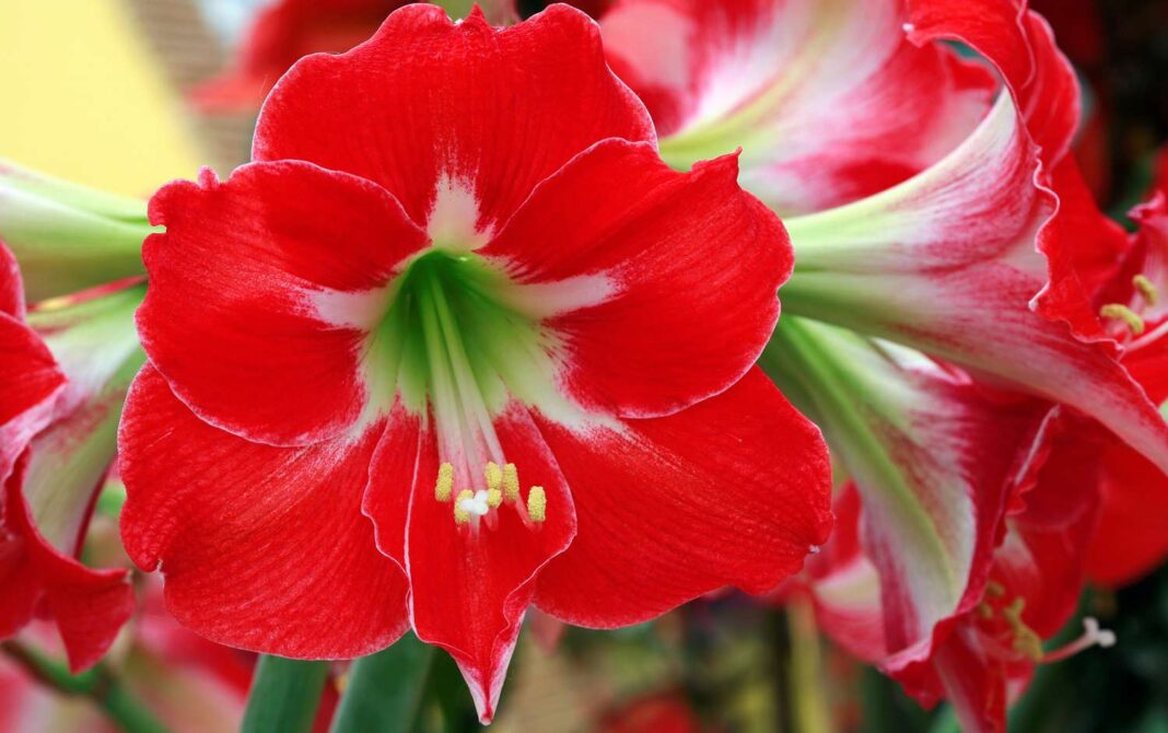 Emri i kësaj lule është amarillis. Vjen nga rajoni tropikal i Amerikës dhe mbillet nga fillimi i nëntorit deri në shkurt, dhe lulëzon në maj dhe qershor.