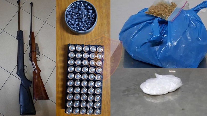 Vihet në pranga një çift bashkëshortësh. Sekuestrohen 2 armë zjarri pushkë, dokumente të dyshuara të falsifikuara, një sasi fishekësh, sasi lënde narkotike të llojit kokainë dhe kanabis dhe 1 automjet.