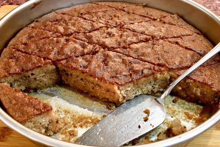 Kur keku të jetë pjekur, nxirreni nga furra, lëreni të ftohet paska dhe priteni në copa të vogla.