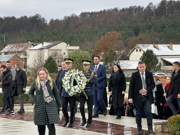 Presidentja e Kosovës, Vjosa Osmani, ka bërë homazhe tek varri i komandantit legjendar, Adem Jashari në Prekaz të Skenderajt me rastin e 28 Nëntorit, ditës së flamurit, përvjetorit të daljes së parë publike të UÇK-së dhe ditëlindjes së komandantit legjendar.