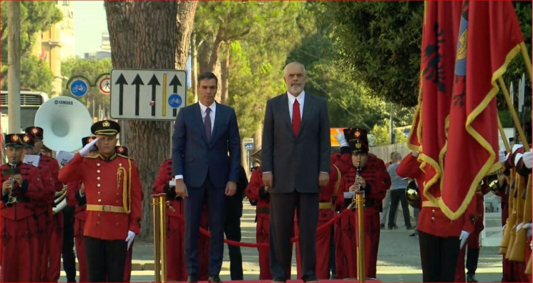 Kryeministri spanjoll Pedro Sabchez ka mbërritur në Shqipëri, ku është pritur me ceremoni zyrtare nga kryeministri Edi Rama.