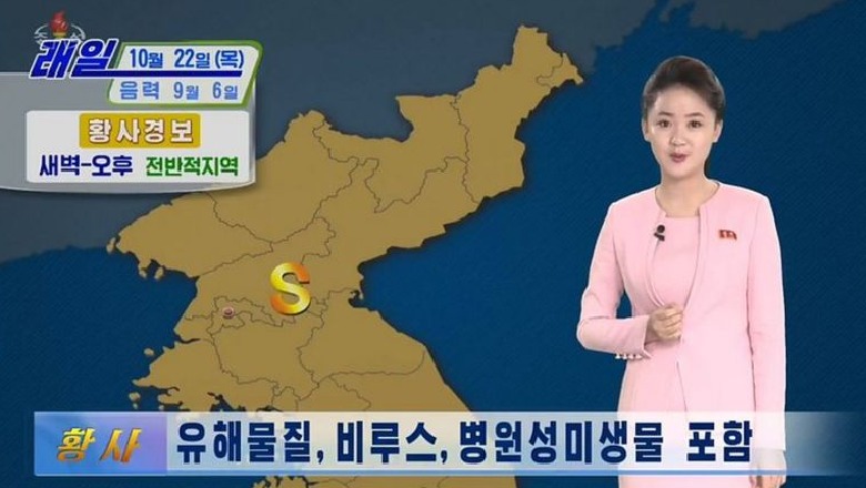 Televizioni Qendror Koreani kontrolluar nga shteti transmetoi segmente të veçanta të motit të mërkurën, duke paralajmëruar një fluks i pluhurit të verdhë do të prekte vendin.