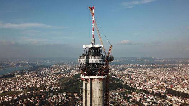 Ndërkohë që vazhdojnë punimet e ndërtimit të Kullës së Çamllëxhas në Stamboll, me montimin e antenës, lartësia arriti në 365 metra, duke lënë pas edhe Kullën Eifel në Paris, Kryeqytetin e Francës.