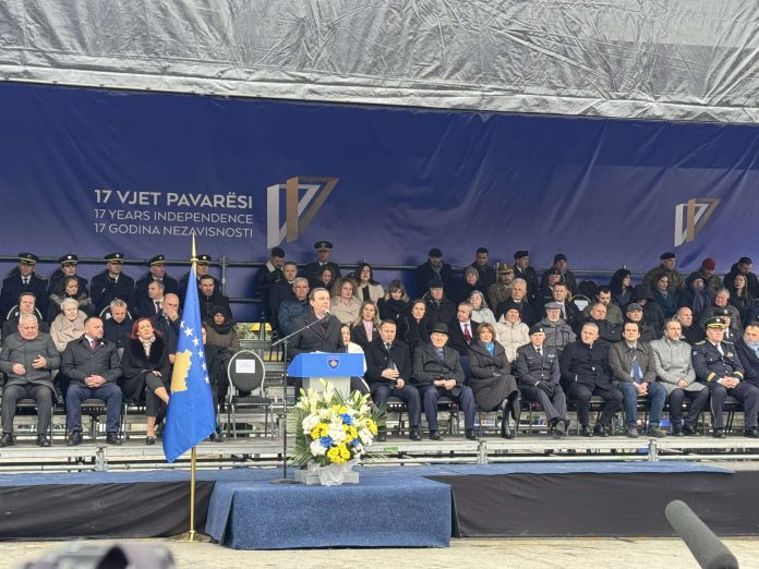 Ndërkohë, po mbahet parakalimi i kuadrateve të FSK-së dhe Policisë së Kosovës, për nder të 17 vjetorit të Pavarësisë së Kosovës.
