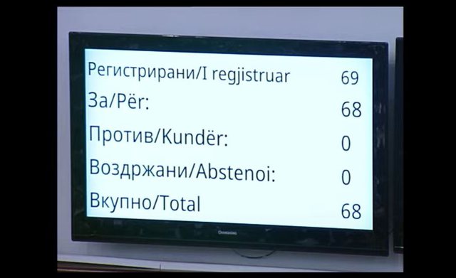 Në sallë 68 deputetë votuan pro miratimit të këtyre konkluzioneve, ndërsa në momentin e votimit deputetët e VMRO-DPMNE-së dalën nga salla e Kuvendit.
