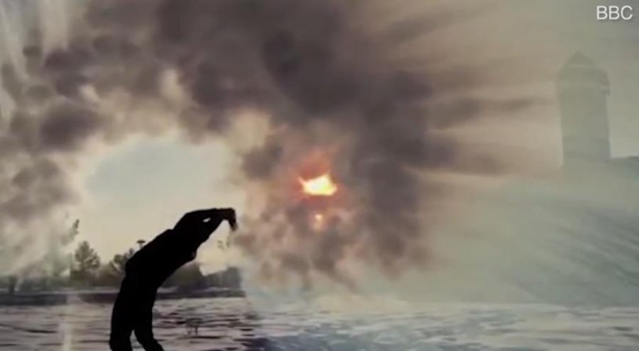 Ky është momenti i pabesueshëm kur uji i nxehtë ngrin menjëherë dhe formon një aureolë akulli në formë harku pasi u spërkat në ajër nga banorët në Kinë. Pamjet mbresëlënëse u kapën në qytetin verior Mohe kur temperaturat ranë në minus 44.3 gradë Celsius, më e ulta e shënuar këtë dimër.