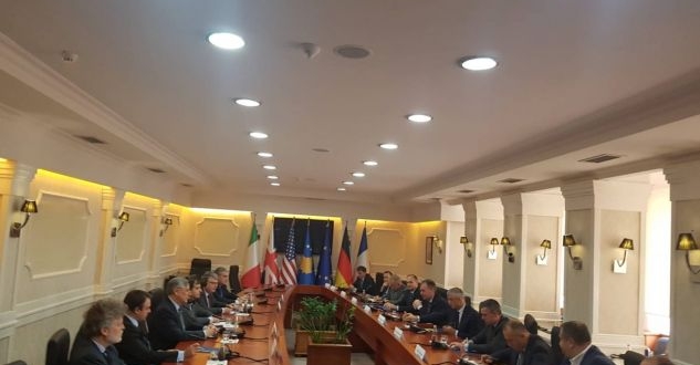 Takimi ka filluar para pak çastesh. Aty po marrin pjesë presidenti Hashim Thaçi, kryeministri Kadri Veseli, Ekipi Negociator, ambasadorët e shteteve të QUNT-it dhe përfaqësuesit e zyrës së BE-së, ishin të ftuar edhe përfaqësues të grupeve parlamentare të LDK-së dhe VV-së.