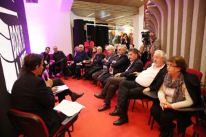 Publicisti Ben Andoni, moderator këtij takimi prezantoi pjesemarrësit dhe të ftuarit që siç u shpreh ai, janë profesorë të fushave të ndryshme, nga historia, sociologjia, poet, njerëz të teatrit dërsa nga pjesa shqiptare janë të panishëm tha Andoni, botues e përkthyes të njohur nga gjuha maqedonase në gjuhën shqipe.