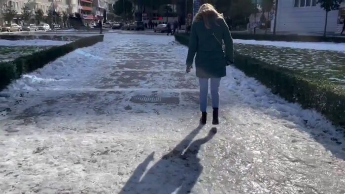 Problematike paraqitet situata nga ngricat në disa pjesë të qytetit konkretisht në trotuare ku qytetarët kanë pasur vështirësi në lëvizje.