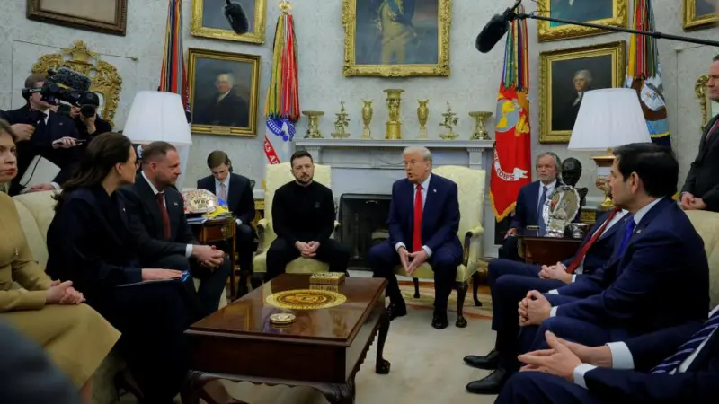Një takim në Shtëpinë e Bardhë, që kishte për qëllim të prodhonte një marrëveshje për burimet minerale mes SHBA-së dhe Ukrainës që presidenti amerikan, Donald Trump, e kishte cilësuar si hap kyç për përfundimin e luftës, shkoi keq: Nuk u nënshkrua asnjë marrëveshje dhe presidenti ukrainas, Volodymyr Zelensky, u largua më herët se ishte planifikuar pas një përplasjeje në Zyrën Ovale. Trump tha se ai “mund të kthehet kur të jetë gati për paqe”.