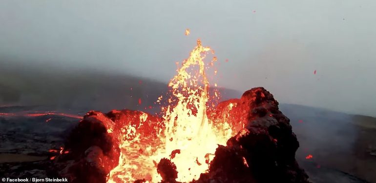 Bjorn Steinbekk, një profesionist i përdorimit të dronëve, regjistroi videon e jashtëzakonshme të dielën në karterin Fagradalsfjall në Gadishullin Reykjanes të Islandës.