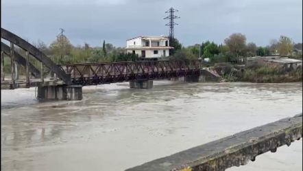 Këto janë pamjet e filmuara në mesditë në urën e Mifolit kur Vjosa shënonte kuotën 5.6 metër me tendencë në rritje. banorë të fshatrave për rreth lumit ndihen të shqetësuar