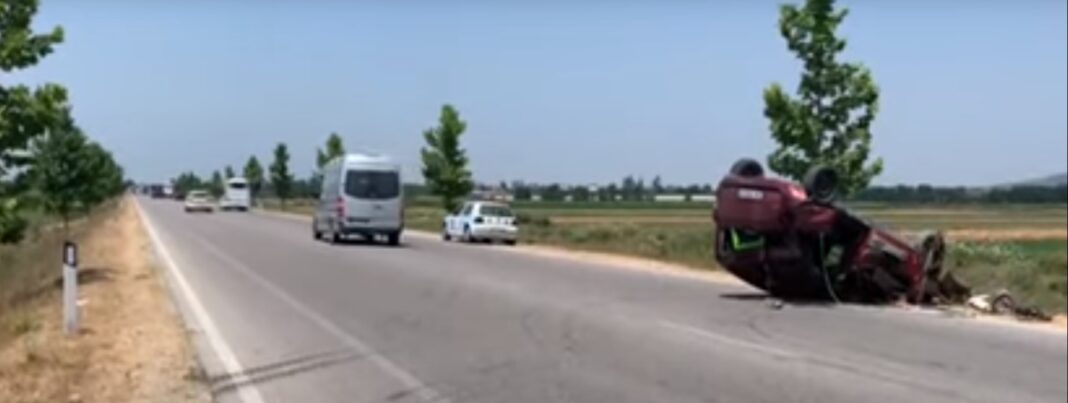 Burime bëjnë me dije se një automjet për shkak të shpejtësisë tej normave të lejuara ka dalë nga rruga duke përfunduar e përmbysur në asfalt.