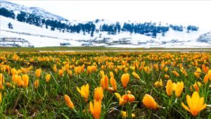 Rrafshnaltat, të cilat kanë një bukuri të veçantë në çdo stinë, bëhen edhe më të bukura me pamjen që ofrojnë bimët e shafranit që ushqehen me ujin e shkrirë nga bora.