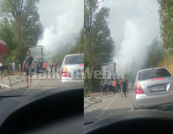 Si pasojë është djegur pjesërisht rimorkia e cila ishte e ngarkuar me letër kartona ambalazhi.