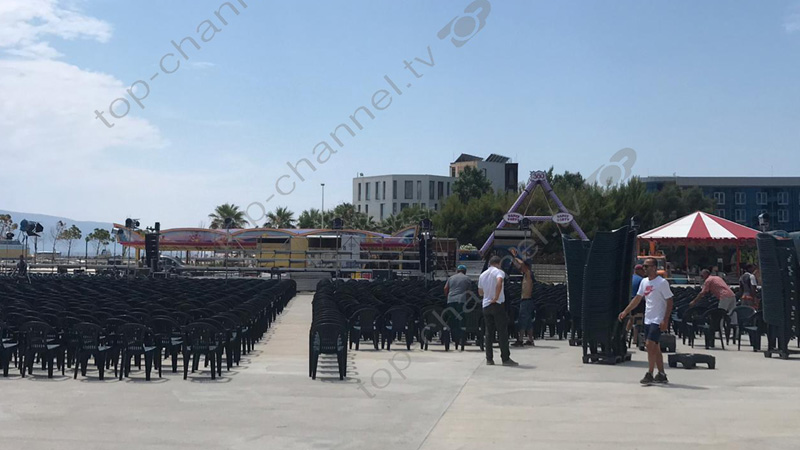 Gazetari i Top Channel Muhamed Veliu nga Vlora raporton se shtabi elektoral në fillim të Lungomares është duke vendosur 10.000 karrige.