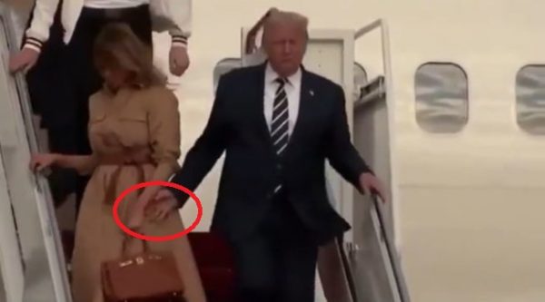 Zonja e Parë është filmuar ndërsa largon me ‘stil’ dorën e Donald Trump ndërsa të dy zbrisnin nga “Air Force One” në bazën ajrore “Andrew” në Uashington.