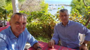 “Kënaqësi të takohesha sot në Durrës për një drekë pune me Presidentin e Republikës së Kosovës, z.Hashim Thaçi. Rritja e mëtejshme e shkëmbimeve të gjithanshme midis dy vendeve është një prioritet i përbashkët. Forcimi i stabilitetit rajonal dhe perspektivës europiane të rajonit është qëllim i përbashkët.