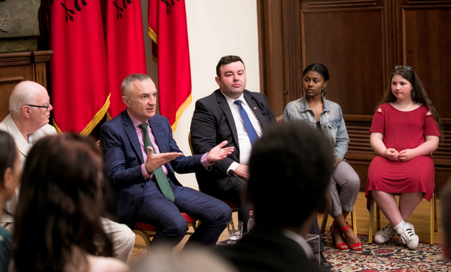 “Shqipëria është e vendosur për të forcuar edhe më tej partneritetin e saj strategjik me SHBA-të. Shqipëria dhe kombi shqiptar do t’i jenë përherë mirënjohës SHBA-ve. Shqipëria është një vend shumë i bukur dhe ndjej kënaqësi tek shoh kaq shumë energji pozitive mes jush, rinisë amerikane, për ta njohur vendin tonë. Uroj që përshtypjet pozitive që keni krijuar nga kjo vizitë, kaq mbresëlënëse për ju, të shërbejnë si pikë referimi edhe për bashkëmoshatarët tuaj në SHBA, për ta vizituar vendin tonë dhe për të forcuar akoma më shumë marrëdhëniet mes dy popujve”, – theksoi ndër të tjera Presidenti Meta gjatë bashkëbisedimit me studentët amerikanë./Top Channel/