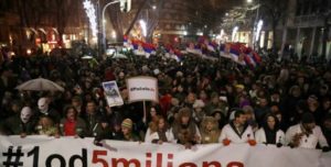 Gjatë protestave me sloganin “një nga pesë milionë”, që filluan në dhjetor me moton “stop këmishëve të përgjakura”, pjesëmarrësit fishkëllenin dhe mbanin parulla në të cilat pos tjerash presidenti serb quhej “hajdut”.