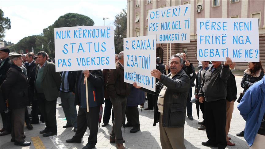 Minatorët e ardhur nga disa qytete të Shqipërisë kanë protestuar në Tiranë para selisë së Kryeministrisë së Shqipërisë.