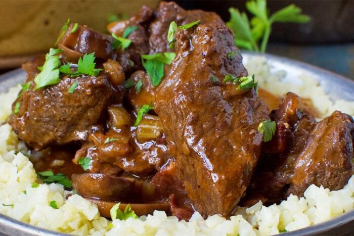Më pas, kur të shërbeni pilafin në mes të tij shtoni thelën e mishit të viçit shoqëruar me pak nga salca e tij.