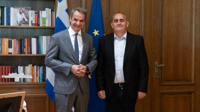 Kryeministri grek Kyriakos Mitsotakis priti sot në një takim eurodeputetin e Demokracisë së Re në pushtet Fredi Beleri në zyrën e tij.