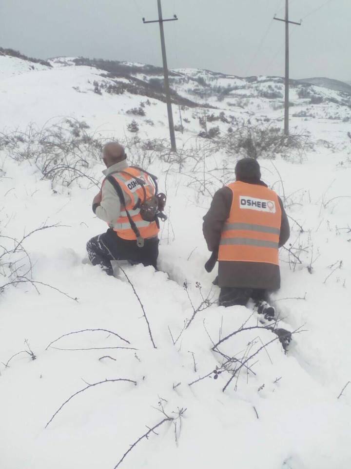 Riparimi i defekteve në rrjetin elektrik në këto ditë me temperatura të ulëta dhe reshje intensive dëbore ka angazhuar në terren të gjithë punonjësit e OSHEE-së që po punojnë në kushte të vështira të krijuara nga moti i keq.