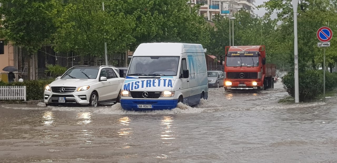 Bëhet me dije se lagjja “28 Nëntori”, zona e “Skelës”, lagjja “Pavarësia”, në këto momente janë të bllokuara nga uji. Kjo vështirëson qarkullimin e mjeteve dhe lëvizjen e kalimtarëve. Ndërkohë, reshjet e shiut vazhdojnë që të bien me intensitet të lartë.