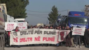 Me pankarta në duar naftëtarët protestues i janë drejtuar rafinerisë së Fierit për të protestuar aty ku është edhe vend grumbullimi i naftës bruto.