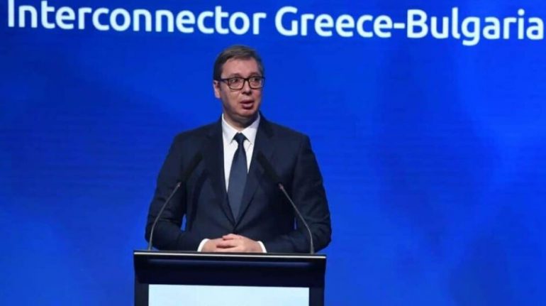 Presidenti serb Aleksandër Vuçiç, në ceremoninë për vënien në punë të një interkonektor gazi 182 kilometra i gjatë, i cili do të transportojë gaz nga Azerbajxhani në Greqi, ka deklaruar se ndjehej si delja e zezë mes miqve.