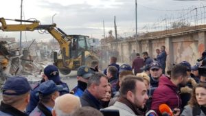 Gjatë momentin të prishjes së ndërtesës dykatëshe, e cila shërbente si shtëpi dhe objekt shërbimi nuk munguan dhe përplasjet me pocilinë. Passi të shemben objekte e paregjistruara në hipotekë, do të fillojë shkatërrimi i objekteve legale. Objekte të cilat grupi i vlerësimit për kompensim i ARRSH po u bën matjet në terren, ku më pas do të dëmshpërblehen.