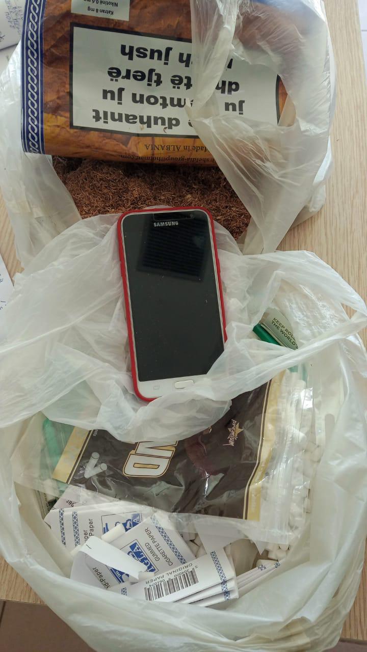 Strukturat e policisë në IEVP Fier, gjatë kontrollit të një pakoje postare dërguar nga nëna e një të dënuari brenda një qeseje me duhan u gjet një aparat celular tip Samsung.