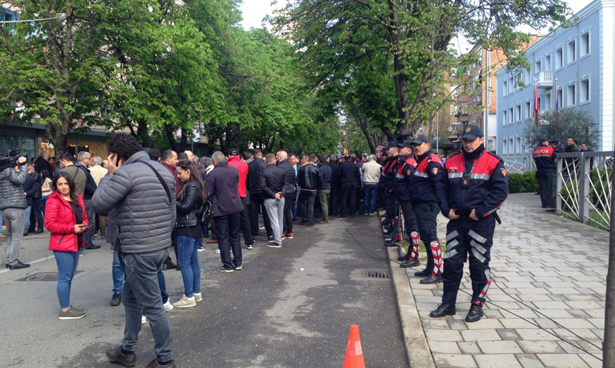Policia ka zhvendosur protestuesit nga trotuari në rrugë, duke u bërë shkak për bllokimin e qarkullimit normal të makinave. Fillimisht protestuesit qëndruan në trotuar, por policia ka kërkuar zhvendosjen, me justifikimin se bllokojnë kalimin e qytetarëve të tjerë.