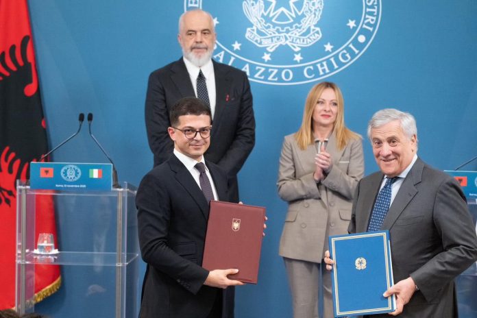 Kryeministri Edi Rama dhe ajo italiane, Giorgia Meloni mbikëqyrën nënshkrimin dhe shkëmbimin e disa marrëveshjeve në sektorë të ndryshëm, ku siguria, zhvillimi i industrisë së mbrojtjes dhe fuqizimi i mbrojtjes civile zunë një vend themelor.
