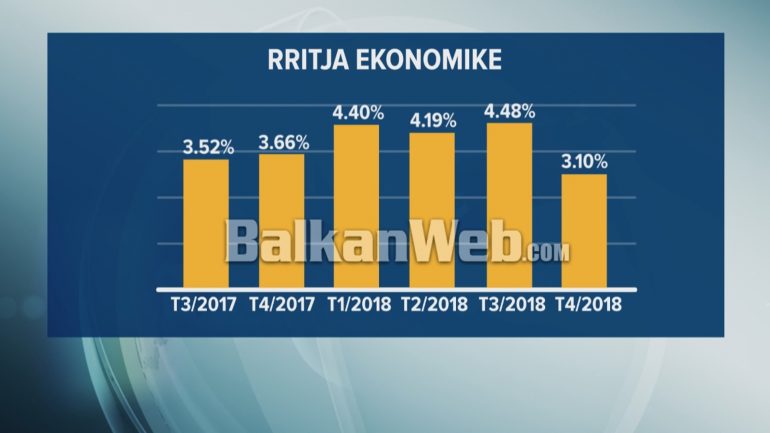Instituti i Statistikave raporton se në tremujorin e katërt të 2018 ritmi i rritjes ekonomike është ngadalësuar ndjeshëm. Në raport me tremujorin e mëparshëm ku rritja ishte mbi 4% në tremujorin e fundit të 2018 ajo arriti në 3.1%. Ky ngadalësim është reflektuar nga rënia e prodhimit të energjisë pasi fundi i 2018 dhe fillimi i 2019 paraqesin një situatë jo të mirë hidrike. Prodhimi i energjisë, që kishte qenë faktori kryesor i rritjes në 9 muajt e parë të vitit, kontribuoi negativisht në të katërtin.