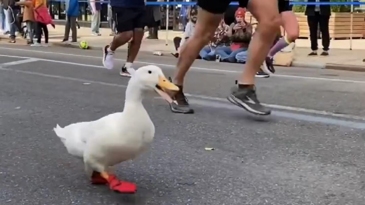 Një rosë iu bashkua 30 mijë pjesëmarrësve në maratonën e Nju Jorkut të kësaj fundjave për të vrapuar nëpër qytet.
