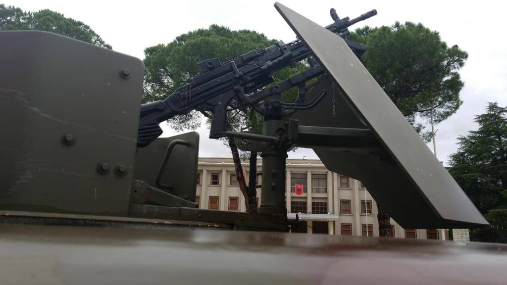 Në disa foto të siguruara nga “Gazeta Shqip”, shihet se pjesa e bulevardit “Dëshmorët e Kombit” përballë Presidencës është mbushur me mjete të rënda të Forcave të Armatosura të Shqipërisë.