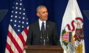 Në fjalimin e tij të parë të rëndësishëm që prej largimit nga Shtëpia e Bardhë, Obama u bëri një apel të gjatë votuesve anembanë Shteteve të Bashkuara për të rikthyer “demokracinë e shëndoshë”, e denoncoi gjithashtu taktikat e përdorura nga Trump dhe republikanët në Uashington si një kërcënim të paprecedentë ndaj të ardhmes së vendit.
