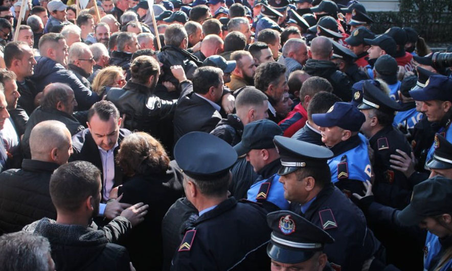 Në këtë protestë nuk kanë munguar as përplasjet fizike mes tyre dhe policisë, e cila i ka ndaluar të hyjnë brenda godinës së Parlamentit.