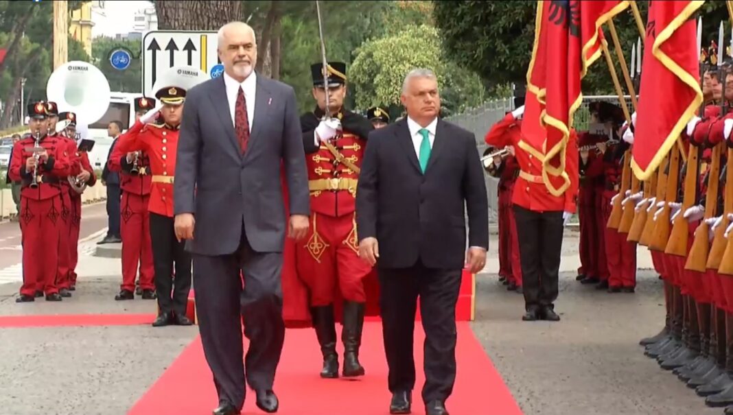 Kryeministri Edi Rama priti sot me një ceremoni shtetërore kryeministrin e Hungarisë, Viktor Orbán, i cili po zhvillon një vizitë zyrtare në Tiranë.