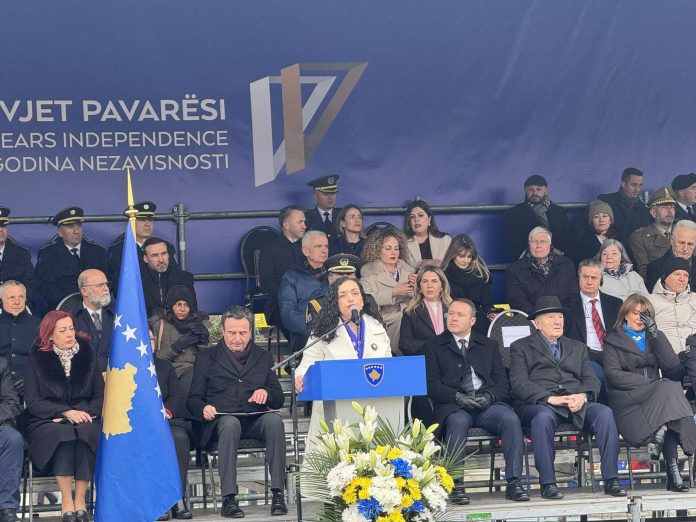 Osmani në ceremoninë ku pritet të parakalojnë kuadratet e FSK-së dhe Policisë së Kosovës për nder të  17 vjetorit të Pavarësisë së Kosovës, tha se vendi ka mbërritur këtu me shumë mund dhe sfida.