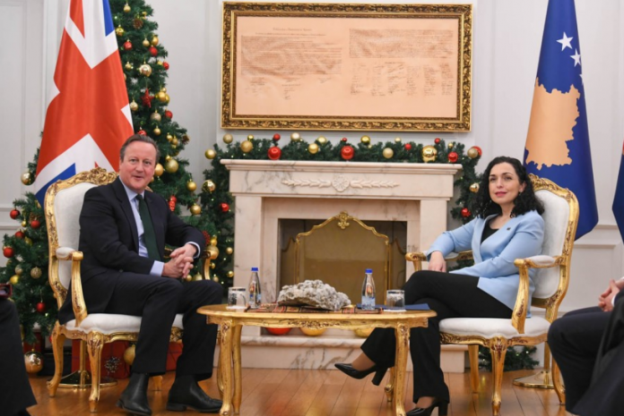 Presidentja e Republikës së Kosovës, Vjosa Osmani sot (e enjte) ka pritur në takim ministrin e Jashtëm të Britanisë së Madhe, David Cameron.